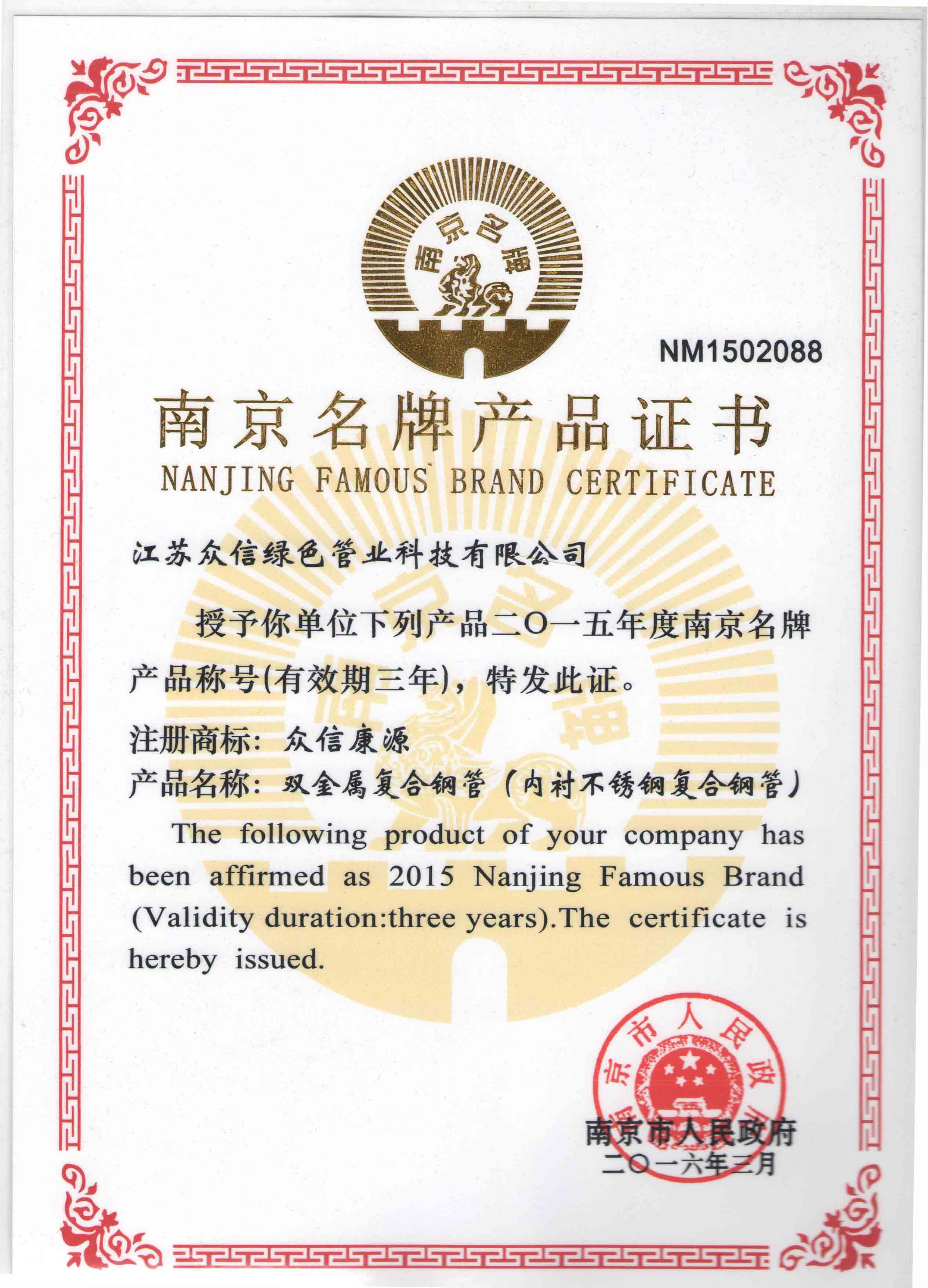 就是南京市人民政府在管材行業(yè)推崇的名牌產(chǎn)品。